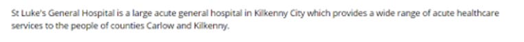 I note that the email above from Ms Alison Mulloney states: “As St. Luke’s is a medium sized hospital”. However, the HSE website as below states: “St. Luke’s General Hospital is a large acute general hospital”. So, which is it; medium or large?