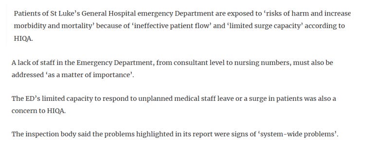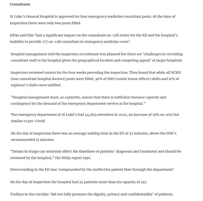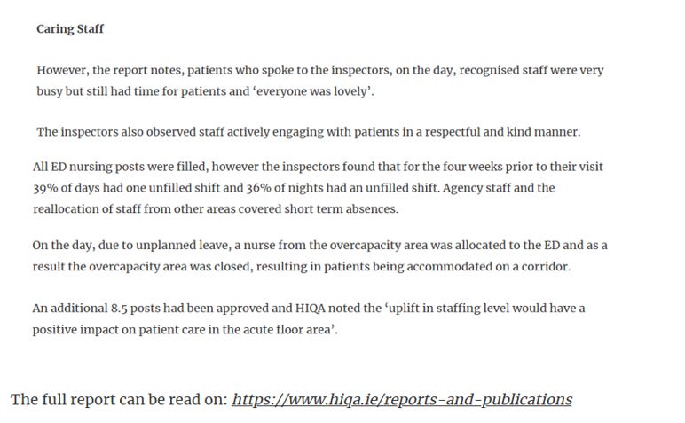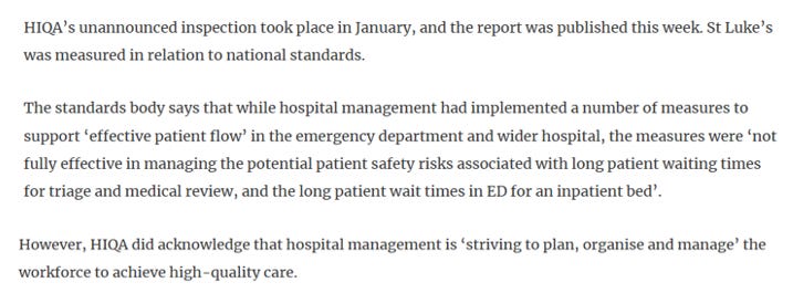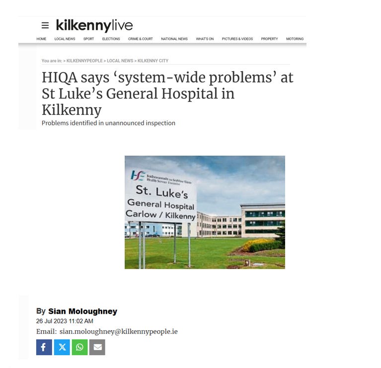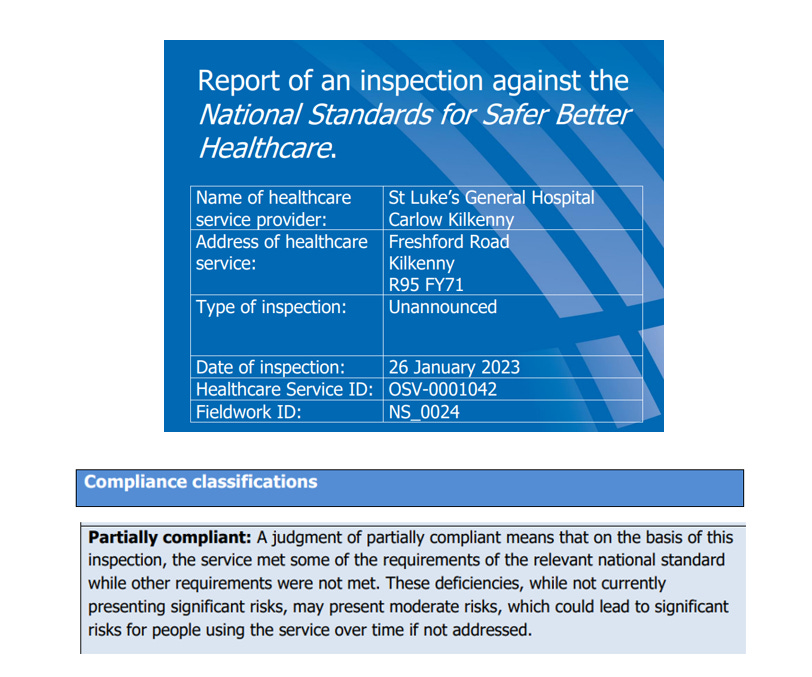 There was an unannounced inspection of the Emergency Department of St. Luke’s General Hospital, Kilkenny on 26th January 2023 by the Health Information and Quality Authority (HIQA) where they found the hospital to be only “partially compliant” in all areas and this was only weeks following our father’s death: